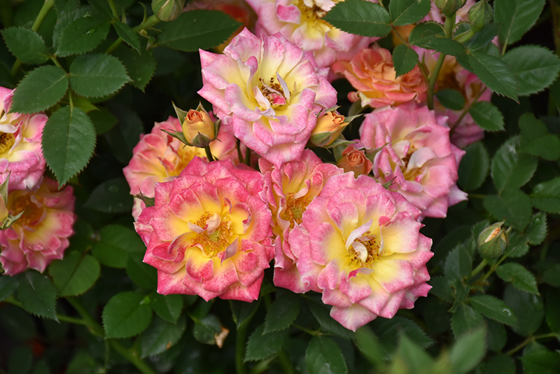 A lovely eye catching miniature producing stunning blooms of pink,orange with yellow centers that re-appear all season long; disease resistant foliage is a beautiful dark green and provides excellent contrast; great for smaller garden areas and containers