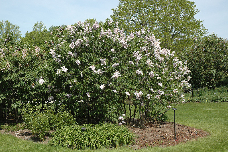Atheline Wilbur Lilac features showy panicles of fragrant white flowers with shell pink streaks rising above the foliage in mid spring. The flowers are excellent for cutting. It has dark green deciduous foliage. The heart-shaped leaves do not develop any appreciable fall colour.