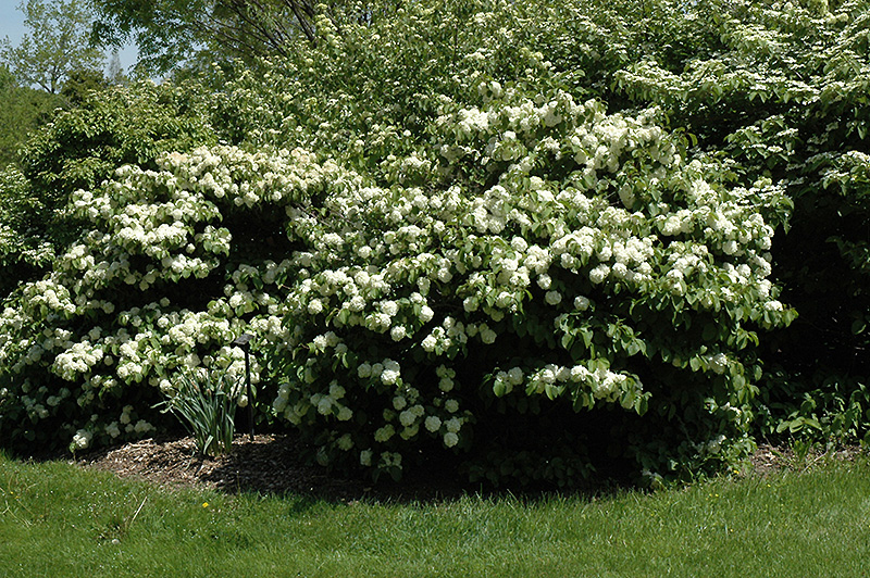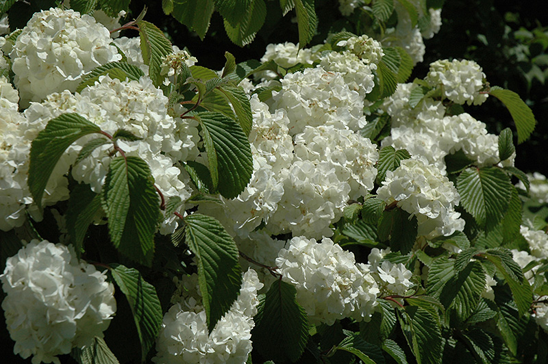 A stunning shrub when in bloom, clothed in large balls of snowy white flowers held at the ends of the branches in spring, as if covered in snow; a dense and compact habit and good fall color; excellent for smaller landscapes