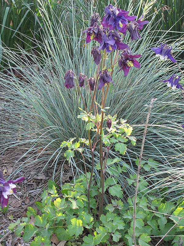 Dark Columbine will grow to be about 12 inches tall at maturity extending to 18 inches tall with the flowers, with a spread of 18 inches. Its foliage tends to remain dense right to the ground, not requiring facer plants in front. It grows at a fast rate, and under ideal conditions can be expected to live for approximately 5 years. As an herbaceous perennial, this plant will usually die back to the crown each winter, and will regrow from the base each spring. Be careful not to disturb the crown in late winter when it may not be readily seen!