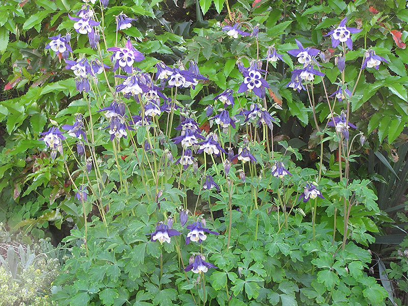 Blue Butterflies Columbine will grow to be about 24 inches tall at maturity, with a spread of 24 inches. Its foliage tends to remain dense right to the ground, not requiring facer plants in front. It grows at a medium rate, and under ideal conditions can be expected to live for approximately 5 years. As an herbaceous perennial, this plant will usually die back to the crown each winter, and will regrow from the base each spring. Be careful not to disturb the crown in late winter when it may not be readily seen!