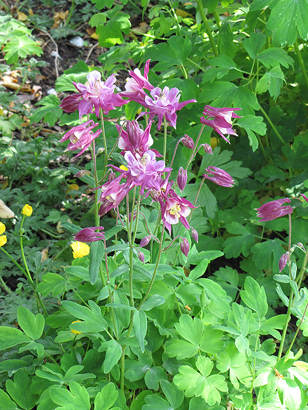 Red Star Columbine will grow to be about 24 inches tall at maturity, with a spread of 24 inches. Its foliage tends to remain dense right to the ground, not requiring facer plants in front. It grows at a medium rate, and under ideal conditions can be expected to live for approximately 5 years. As an herbaceous perennial, this plant will usually die back to the crown each winter, and will regrow from the base each spring. Be careful not to disturb the crown in late winter when it may not be readily seen!