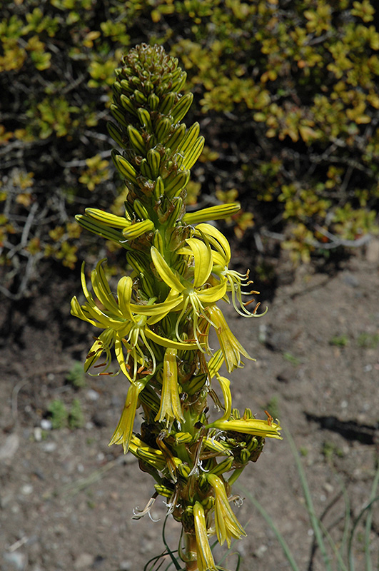 Jacob's Rod features bold spikes of yellow star-shaped flowers at the ends of the stems from mid to late spring, which emerge from distinctive chartreuse flower buds. Its twisted grassy leaves remain bluish-green in colour throughout the season.