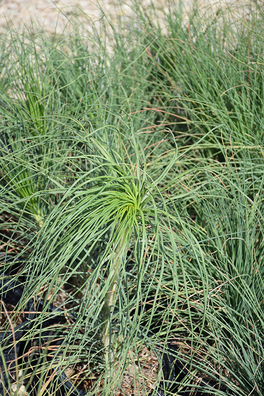 An interesting garden addition with fine wispy blue-green grassy foliage mounds producing towering flower spikes with large clusters of buds that each open randomly revealing bright yellow blooms; adds a real Mediterranean feel