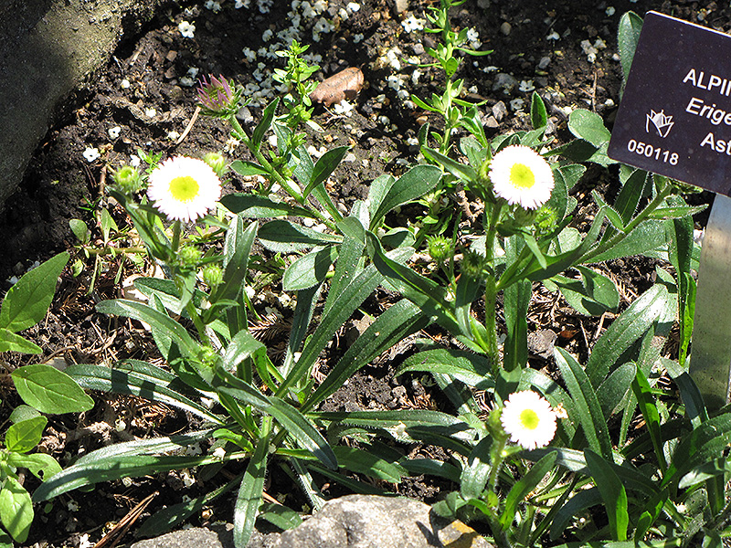 Alpine Fleabane will grow to be about 10 inches tall at maturity, with a spread of 12 inches. The flower stalks can be weak and so it may require staking in exposed sites or excessively rich soils. It grows at a fast rate, and under ideal conditions can be expected to live for approximately 10 years. As an herbaceous perennial, this plant will usually die back to the crown each winter, and will regrow from the base each spring. Be careful not to disturb the crown in late winter when it may not be readily seen!
