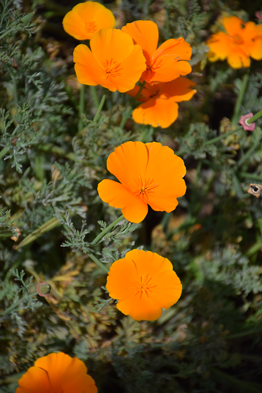 California's state flower, the gray green foliage forms a ferny rosette topped by flower stalks producing dazzling golden blooms that emerge for several weeks; cut down plants for reblooming flush; often grown as an annual in colder climates