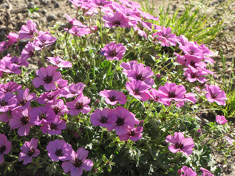 Ashy Cranesbill will grow to be only 6 inches tall at maturity, with a spread of 12 inches. When grown in masses or used as a bedding plant, individual plants should be spaced approximately 10 inches apart. Its foliage tends to remain low and dense right to the ground. It grows at a medium rate, and under ideal conditions can be expected to live for approximately 10 years. As an herbaceous perennial, this plant will usually die back to the crown each winter, and will regrow from the base each spring. Be careful not to disturb the crown in late winter when it may not be readily seen!