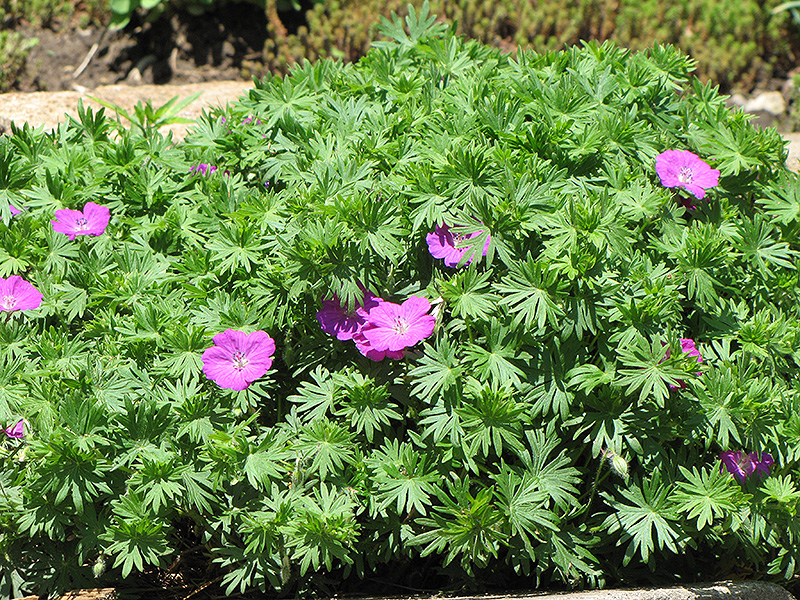 Ankum's Pride Cranesbill will grow to be about 18 inches tall at maturity, with a spread of 24 inches. When grown in masses or used as a bedding plant, individual plants should be spaced approximately 20 inches apart. Its foliage tends to remain dense right to the ground, not requiring facer plants in front. It grows at a medium rate, and under ideal conditions can be expected to live for approximately 10 years. As an herbaceous perennial, this plant will usually die back to the crown each winter, and will regrow from the base each spring. Be careful not to disturb the crown in late winter when it may not be readily seen!