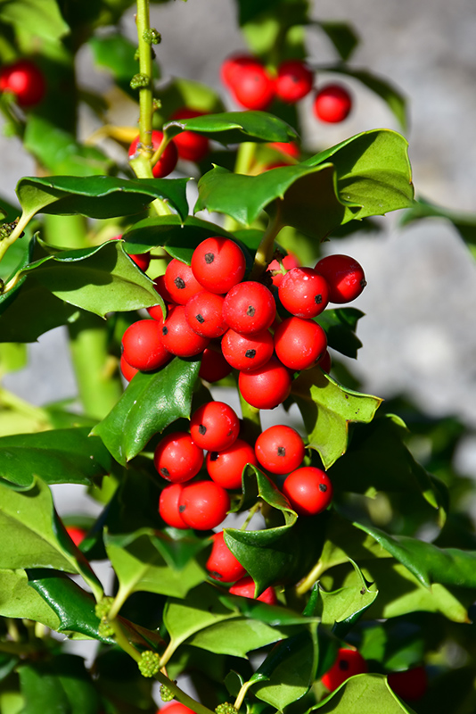 One of the hardiest evergreen hollies, this is a large, spreading shrub with the traditional spiny blue-green foliage and showy red berries in winter; requires a male pollinator, often paired with China Boy
