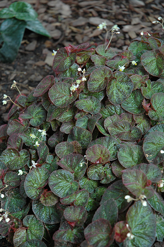 An outstanding begonia with lovely deep green and crimson leaves for a visual impact in the garden; white blooms with hints of shell pink are produced throughout the season; grows well in humid conditions