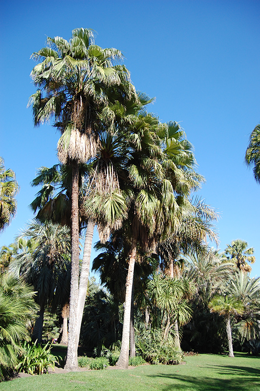 Guadalupe Palm will grow to be about 45 feet tall at maturity, with a spread of 20 feet. It has a low canopy with a typical clearance of 4 feet from the ground, and should not be planted underneath power lines. It grows at a slow rate, and under ideal conditions can be expected to live to a ripe old age of 150 years or more; think of this as a heritage tree for future generations!