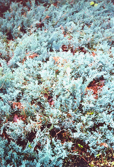 A choice groundcover evergreen for general landscape use, featuring silver-blue foliage taking on a hint of purple in winter, attractively arching low branching habit, wide spreading; extremely adaptable and hardy, one of the best for mass planting