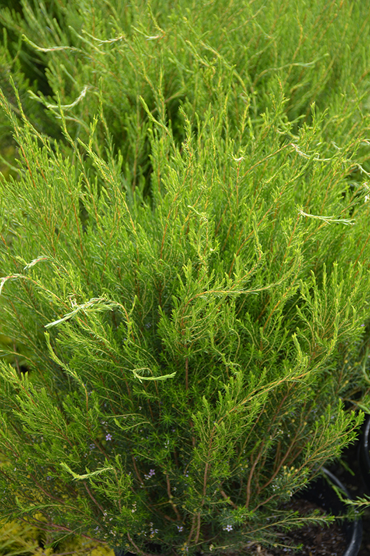 Confetti Bush features dainty clusters of lightly-scented white star-shaped flowers with pink streaks at the ends of the branches from mid spring to early fall. It has green evergreen foliage. The needles remain green throughout the winter.