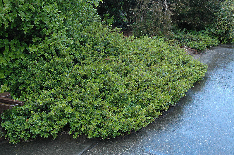 Dense, velvety gray-green leaves cover this low evergreen shrub; when massed it is a good groundcover; rosy-pink bell shaped flowers emerge in late winter and dangle at the end of the branches; drought tolerant once established