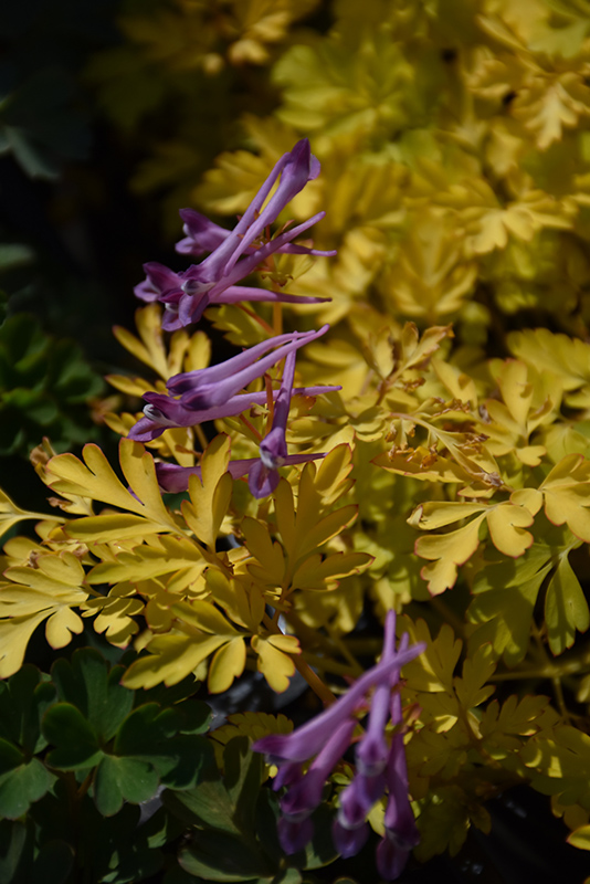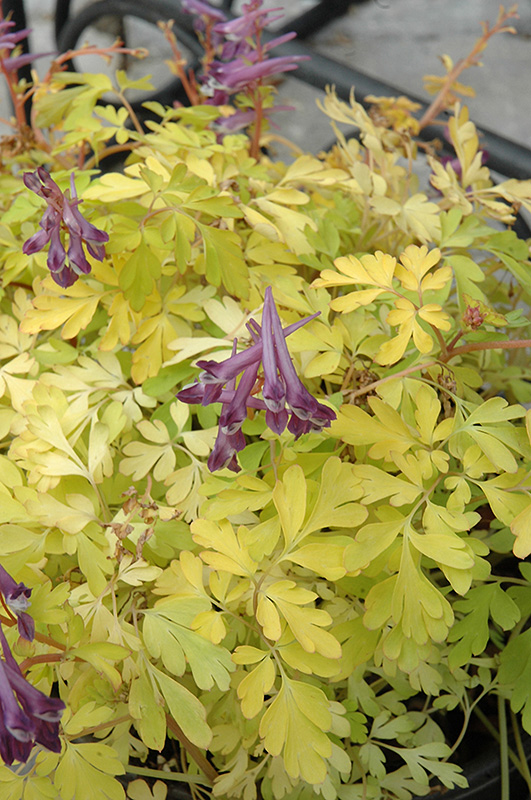 Berry Exciting Corydalis will grow to be about 10 inches tall at maturity, with a spread of 15 inches. Its foliage tends to remain low and dense right to the ground. It grows at a medium rate, and under ideal conditions can be expected to live for approximately 5 years. As an evegreen perennial, this plant will typically keep its form and foliage year-round. As this plant tends to go dormant in summer, it is best interplanted with late-season bloomers to hide the dying foliage.