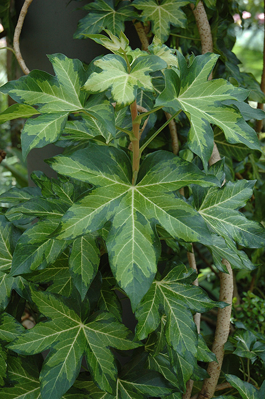 Annemieke Fatshedera has attractive yellow-variegated dark green foliage on a plant with an upright spreading habit of growth. The lobed leaves are highly ornamental and remain dark green throughout the winter.