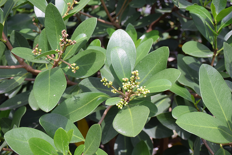 A vigorous dense evergreen with broad glossy pale apple green leaves; a broad tree in nature, it is generally grown as a hedge or shrub with regular shearing; must have shelter from cold drying winds