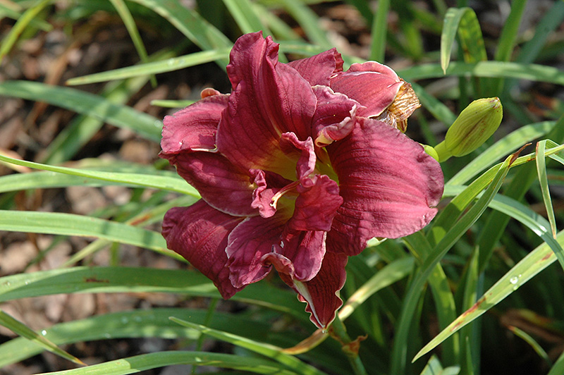 Double Grapette Daylily will grow to be about 18 inches tall at maturity extending to 24 inches tall with the flowers, with a spread of 24 inches. When grown in masses or used as a bedding plant, individual plants should be spaced approximately 18 inches apart. It grows at a medium rate, and under ideal conditions can be expected to live for approximately 10 years. As an herbaceous perennial, this plant will usually die back to the crown each winter, and will regrow from the base each spring. Be careful not to disturb the crown in late winter when it may not be readily seen!