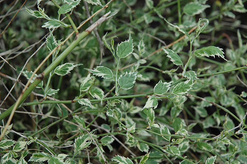 Picta Japanese Kerria features showy gold flowers along the branches from early to mid spring. It has attractive white-variegated green foliage. The narrow leaves are highly ornamental and turn lemon yellow in fall. The smooth bark and lime green branches add an interesting dimension to the landscape.