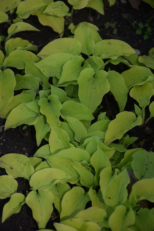 Unique small hosta with chartreuse to yellow leaves that will brighten up with some sun, but protect from mid-day sun; provides a bright contrast in a shade garden; violet spikes of flowers in late summer