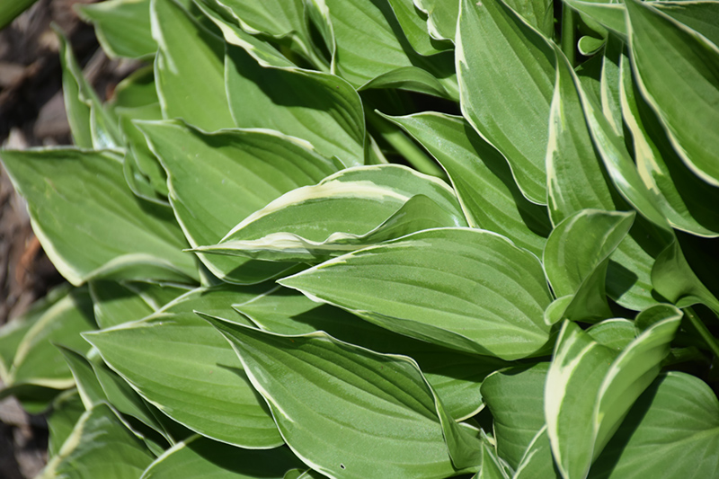 An interesting small hosta with graceful lance-shaped leaves, green with cream to yellow edges; provides beautiful texture and contrast to other plants; lavender spikes of flowers in summer