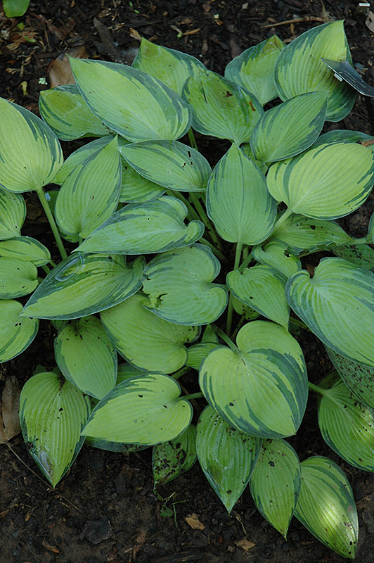 Edge Of Night Hosta will grow to be about 24 inches tall at maturity, with a spread of 4 feet. When grown in masses or used as a bedding plant, individual plants should be spaced approximately 4 feet apart. Its foliage tends to remain dense right to the ground, not requiring facer plants in front. It grows at a slow rate, and under ideal conditions can be expected to live for approximately 10 years. As an herbaceous perennial, this plant will usually die back to the crown each winter, and will regrow from the base each spring. Be careful not to disturb the crown in late winter when it may not be readily seen!