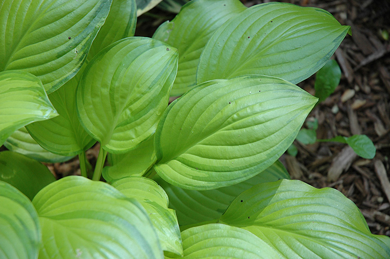Hoosier Harmony Hosta will grow to be about 20 inches tall at maturity, with a spread of 3 feet. When grown in masses or used as a bedding plant, individual plants should be spaced approximately 30 inches apart. Its foliage tends to remain dense right to the ground, not requiring facer plants in front. It grows at a slow rate, and under ideal conditions can be expected to live for approximately 10 years. As an herbaceous perennial, this plant will usually die back to the crown each winter, and will regrow from the base each spring. Be careful not to disturb the crown in late winter when it may not be readily seen!