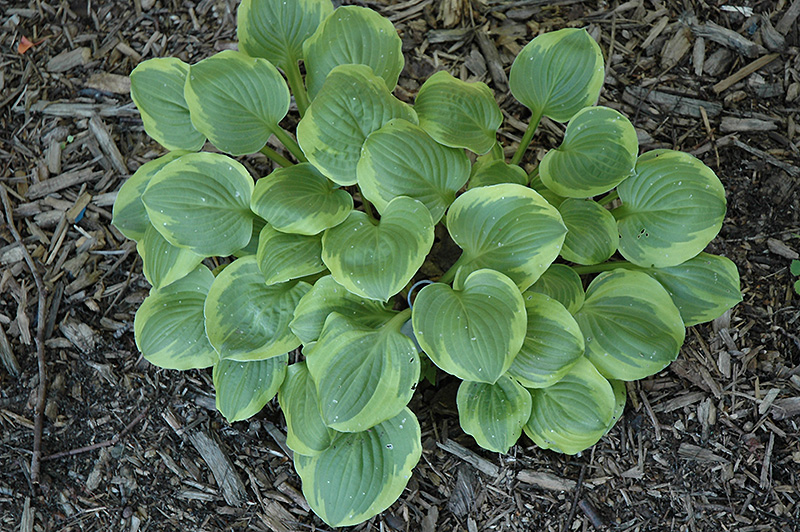 Ice Cream Hosta will grow to be about 10 inches tall at maturity, with a spread of 15 inches. When grown in masses or used as a bedding plant, individual plants should be spaced approximately 12 inches apart. Its foliage tends to remain low and dense right to the ground. It grows at a slow rate, and under ideal conditions can be expected to live for approximately 10 years. As an herbaceous perennial, this plant will usually die back to the crown each winter, and will regrow from the base each spring. Be careful not to disturb the crown in late winter when it may not be readily seen!