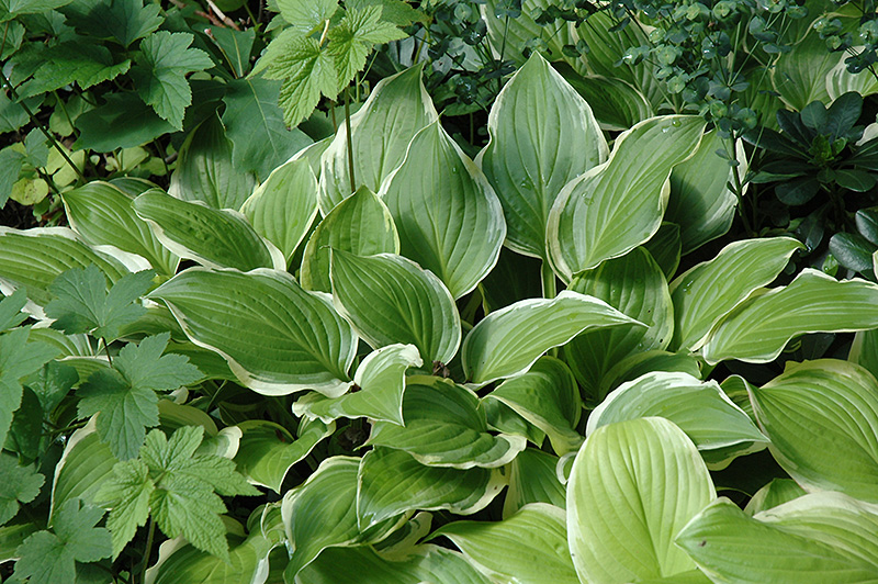 Wonderful olive green leaves with creamy yellow margins that age to white in summer; provides beautiful texture and visual contrast to other plants; pale lavender spikes of flowers from mid-summer to early fall