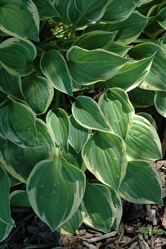A strong growing miniature hosta that quickly forms an attractive and full clump; oval leaves are medium green with a fine white margin; spikes of creamy white flowers in mid-summer