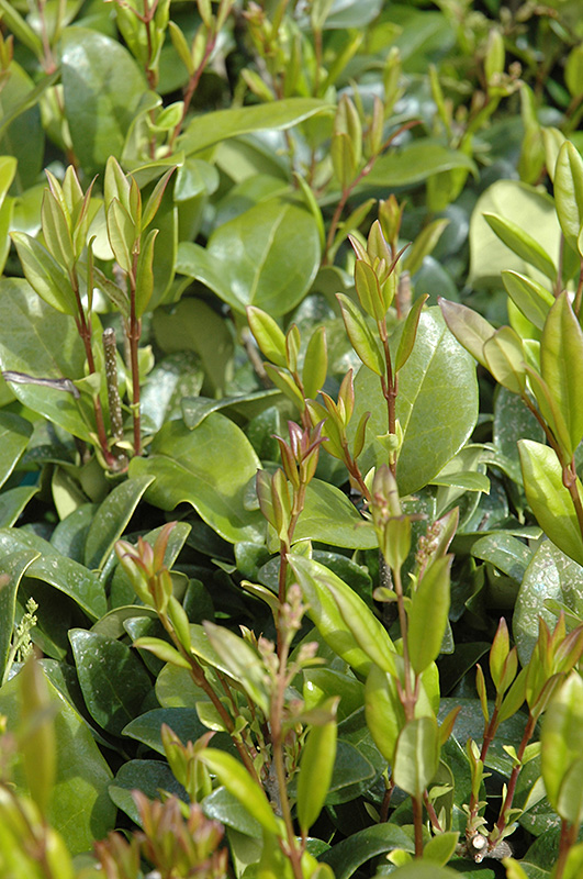 Texanum Japanese Privet features showy panicles of lightly-scented white flowers at the ends of the branches in mid spring. It has dark green evergreen foliage. The glossy pointy leaves remain dark green throughout the winter.