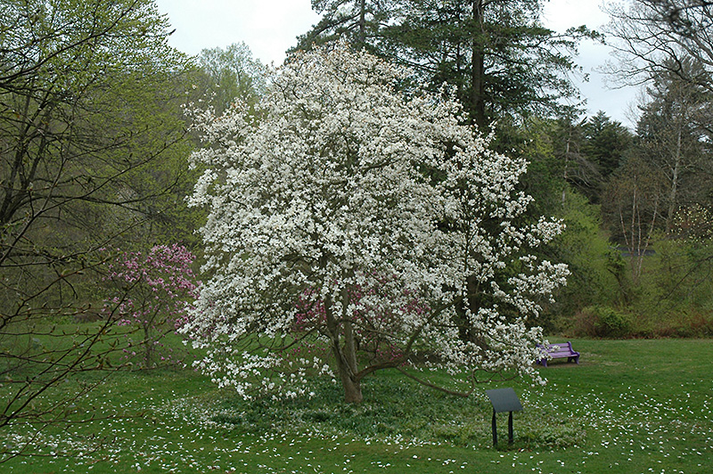 This compact magnolia tree has large, fragrant white flowers in spring before the leaves emerge and a large, spreading habit of growth; an ideal feature in the average home landscape, flowers are sensitive to late spring frosts