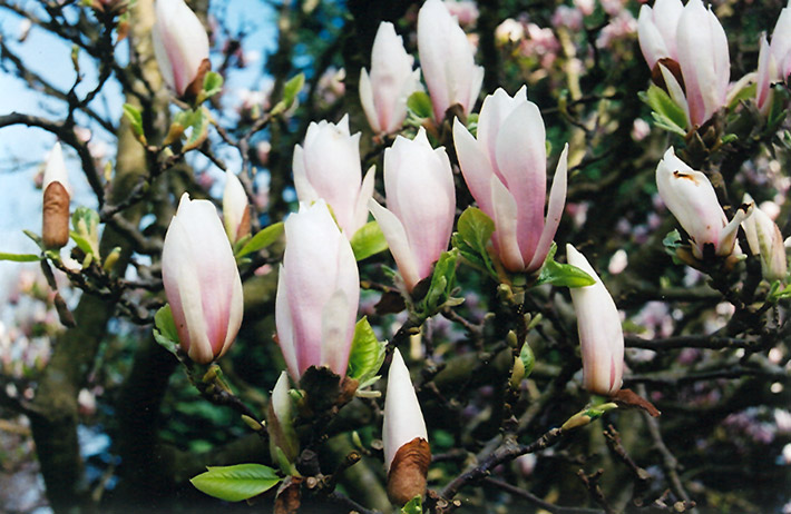 A compact magnolia with breathtaking cup-shaped fragrant light pink flowers which appear in early spring before the leaves, upright habit, excellent size for smaller home landscapes; flowers are susceptible to late spring frosts