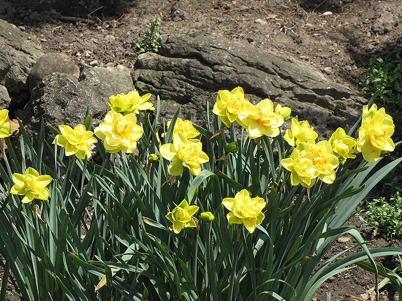 Golden Ducat Daffodil will grow to be about 12 inches tall at maturity extending to 16 inches tall with the flowers, with a spread of 16 inches. When grown in masses or used as a bedding plant, individual plants should be spaced approximately 8 inches apart. It grows at a medium rate, and under ideal conditions can be expected to live for approximately 10 years. As an herbaceous perennial, this plant will usually die back to the crown each winter, and will regrow from the base each spring. Be careful not to disturb the crown in late winter when it may not be readily seen! As this plant tends to go dormant in summer, it is best interplanted with late-season bloomers to hide the dying foliage.