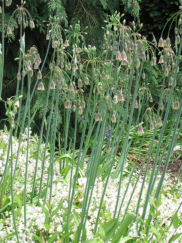 Make a bold statement with these nodding, bell-shaped flowers on 3' stems; makes an interesting cutflower; strong garlic smell; this flower drips nectar and attracts bees
