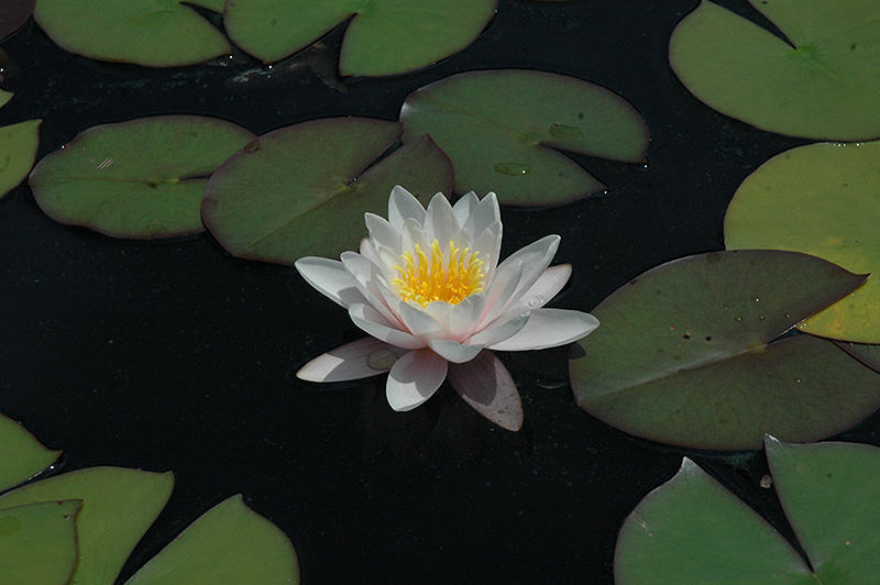 Cup-shaped, light-pink to white flowers will add elegance to your pond; easy to care for; water lilies dislike moving water