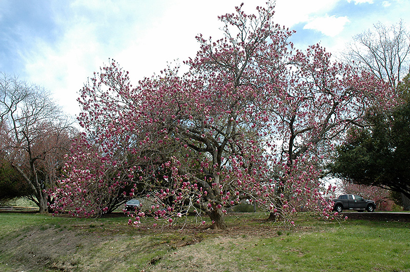 Lennei Saucer Magnolia will grow to be about 20 feet tall at maturity, with a spread of 20 feet. It has a low canopy with a typical clearance of 3 feet from the ground, and is suitable for planting under power lines. It grows at a medium rate, and under ideal conditions can be expected to live for 80 years or more.