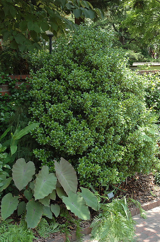 Upright False Holly is a dense multi-stemmed evergreen perennial with a narrowly upright and columnar growth habit. Its medium texture blends into the garden, but can always be balanced by a couple of finer or coarser plants for an effective composition.