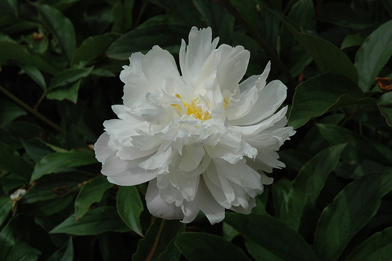 Madelon Peony will grow to be about 24 inches tall at maturity extending to 3 feet tall with the flowers, with a spread of 3 feet. When grown in masses or used as a bedding plant, individual plants should be spaced approximately 30 inches apart. The flower stalks can be weak and so it may require staking in exposed sites or excessively rich soils. It grows at a slow rate, and under ideal conditions can be expected to live for approximately 20 years. As an herbaceous perennial, this plant will usually die back to the crown each winter, and will regrow from the base each spring. Be careful not to disturb the crown in late winter when it may not be readily seen!