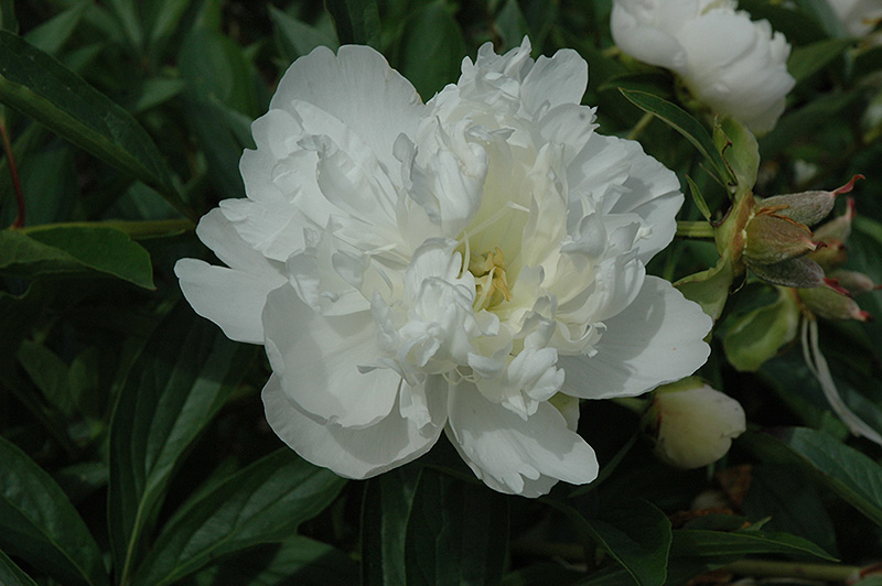 Mademoiselle Jeanne Riviere Peony is an herbaceous perennial with a more or less rounded form. Its medium texture blends into the garden, but can always be balanced by a couple of finer or coarser plants for an effective composition.