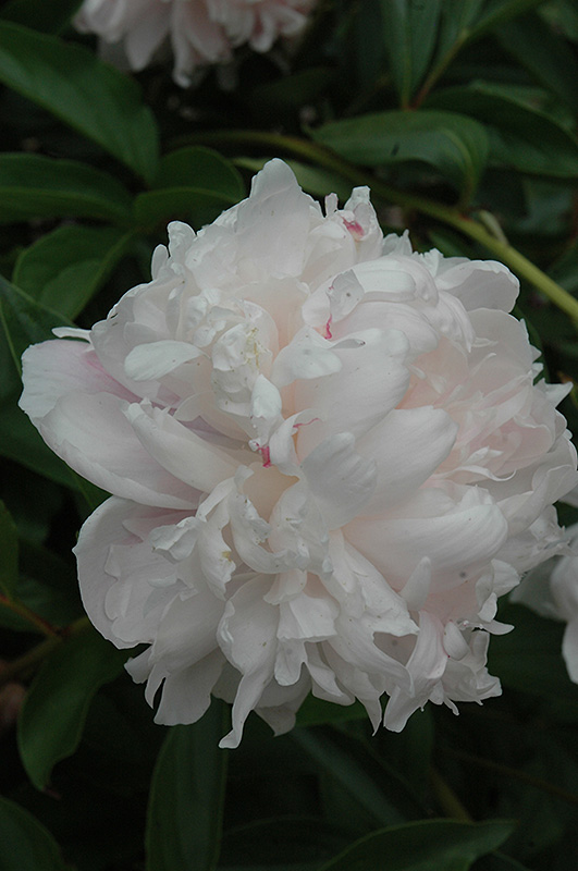 Marguerite Gaudichau Peony will grow to be about 24 inches tall at maturity extending to 3 feet tall with the flowers, with a spread of 3 feet. When grown in masses or used as a bedding plant, individual plants should be spaced approximately 30 inches apart. The flower stalks can be weak and so it may require staking in exposed sites or excessively rich soils. It grows at a slow rate, and under ideal conditions can be expected to live for approximately 20 years. As an herbaceous perennial, this plant will usually die back to the crown each winter, and will regrow from the base each spring. Be careful not to disturb the crown in late winter when it may not be readily seen!