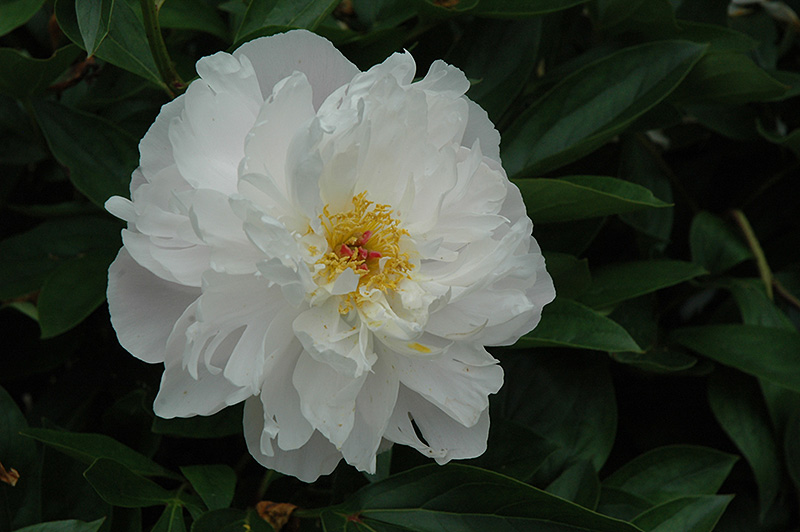President Wilson Peony will grow to be about 28 inches tall at maturity extending to 4 feet tall with the flowers, with a spread of 3 feet. When grown in masses or used as a bedding plant, individual plants should be spaced approximately 30 inches apart. The flower stalks can be weak and so it may require staking in exposed sites or excessively rich soils. It grows at a slow rate, and under ideal conditions can be expected to live for approximately 20 years. As an herbaceous perennial, this plant will usually die back to the crown each winter, and will regrow from the base each spring. Be careful not to disturb the crown in late winter when it may not be readily seen!