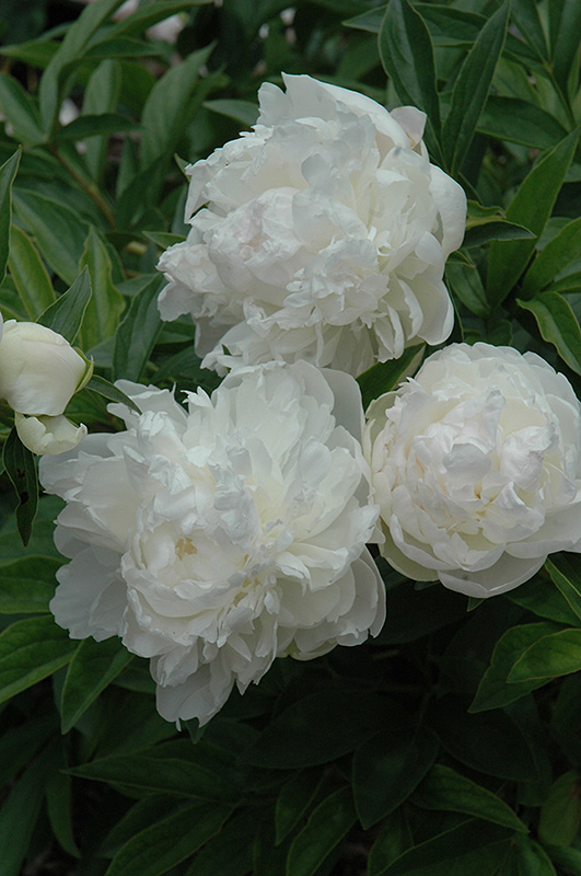 Blanche Turner Peony will grow to be about 30 inches tall at maturity, with a spread of 3 feet. When grown in masses or used as a bedding plant, individual plants should be spaced approximately 30 inches apart. The flower stalks can be weak and so it may require staking in exposed sites or excessively rich soils. It grows at a slow rate, and under ideal conditions can be expected to live for approximately 20 years. As an herbaceous perennial, this plant will usually die back to the crown each winter, and will regrow from the base each spring. Be careful not to disturb the crown in late winter when it may not be readily seen!