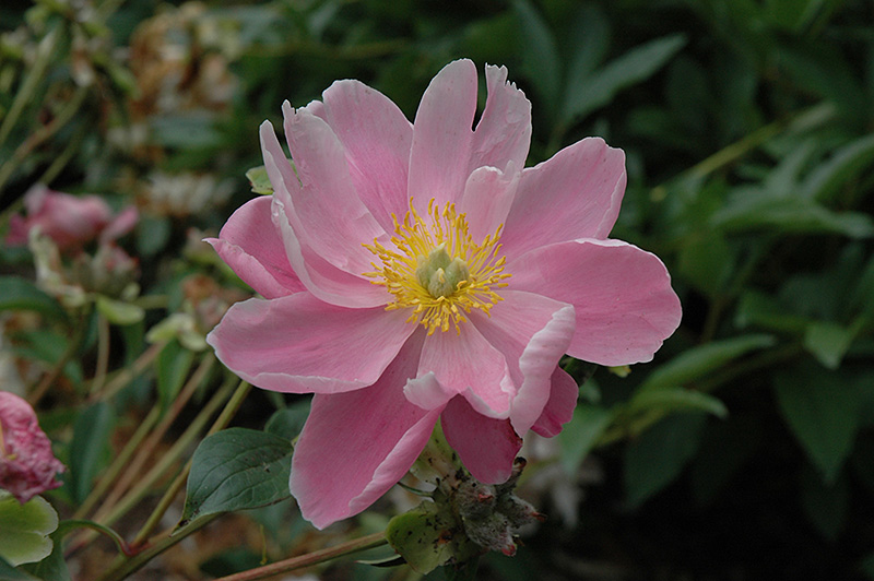 Elfin Pink Peony will grow to be about 30 inches tall at maturity, with a spread of 3 feet. When grown in masses or used as a bedding plant, individual plants should be spaced approximately 30 inches apart. The flower stalks can be weak and so it may require staking in exposed sites or excessively rich soils. It grows at a slow rate, and under ideal conditions can be expected to live for approximately 20 years. As an herbaceous perennial, this plant will usually die back to the crown each winter, and will regrow from the base each spring. Be careful not to disturb the crown in late winter when it may not be readily seen!