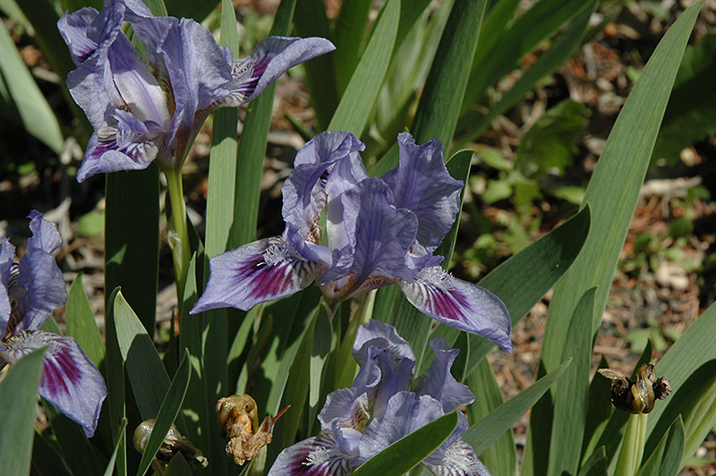 Blended Blue Iris will grow to be about 10 inches tall at maturity extending to 16 inches tall with the flowers, with a spread of 12 inches. When grown in masses or used as a bedding plant, individual plants should be spaced approximately 10 inches apart. Its foliage tends to remain low and dense right to the ground. It grows at a medium rate, and under ideal conditions can be expected to live for approximately 10 years. As an herbaceous perennial, this plant will usually die back to the crown each winter, and will regrow from the base each spring. Be careful not to disturb the crown in late winter when it may not be readily seen!