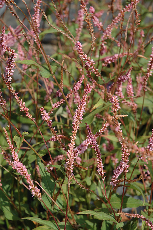 Pink Elephant Fleeceflower has masses of beautiful spikes of pink flowers rising above the foliage from mid summer to early fall, which are most effective when planted in groupings. The flowers are excellent for cutting. Its pointy leaves remain dark green in colour throughout the season. The burgundy stems can be quite attractive.