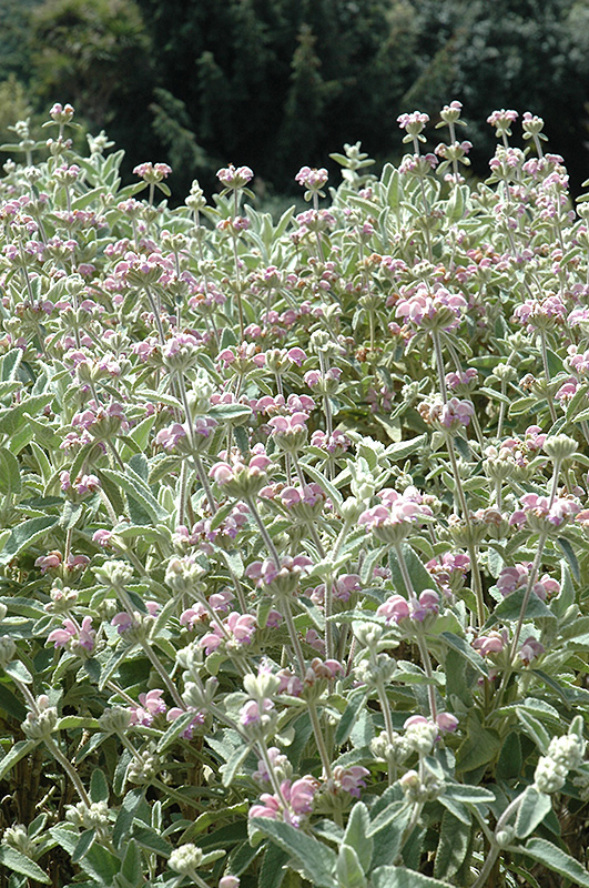 An interesting perennial with dense whorls of lilac-pink flowers in spring; silvery gray-green woolly leaves are interesting all season