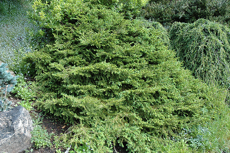 Reflexa Cat Tail Spruce is a dwarf conifer which is primarily valued in the landscape or garden for its highly ornamental weeping form. It has rich green evergreen foliage which emerges light green in spring. The needles remain green throughout the winter. The purple fruits are held in cones from early spring to early summer.