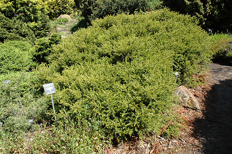 This excellent groundcover presents dense, leathery, olive green needles that form a carpet up to 6 feet across; one of the hardiest of the species; visually stunning when massed along the front of shaded borders