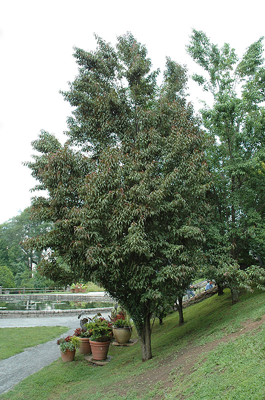 Columnar Peach is a dense deciduous tree with a narrowly upright and columnar growth habit. Its average texture blends into the landscape, but can be balanced by one or two finer or coarser trees or shrubs for an effective composition.